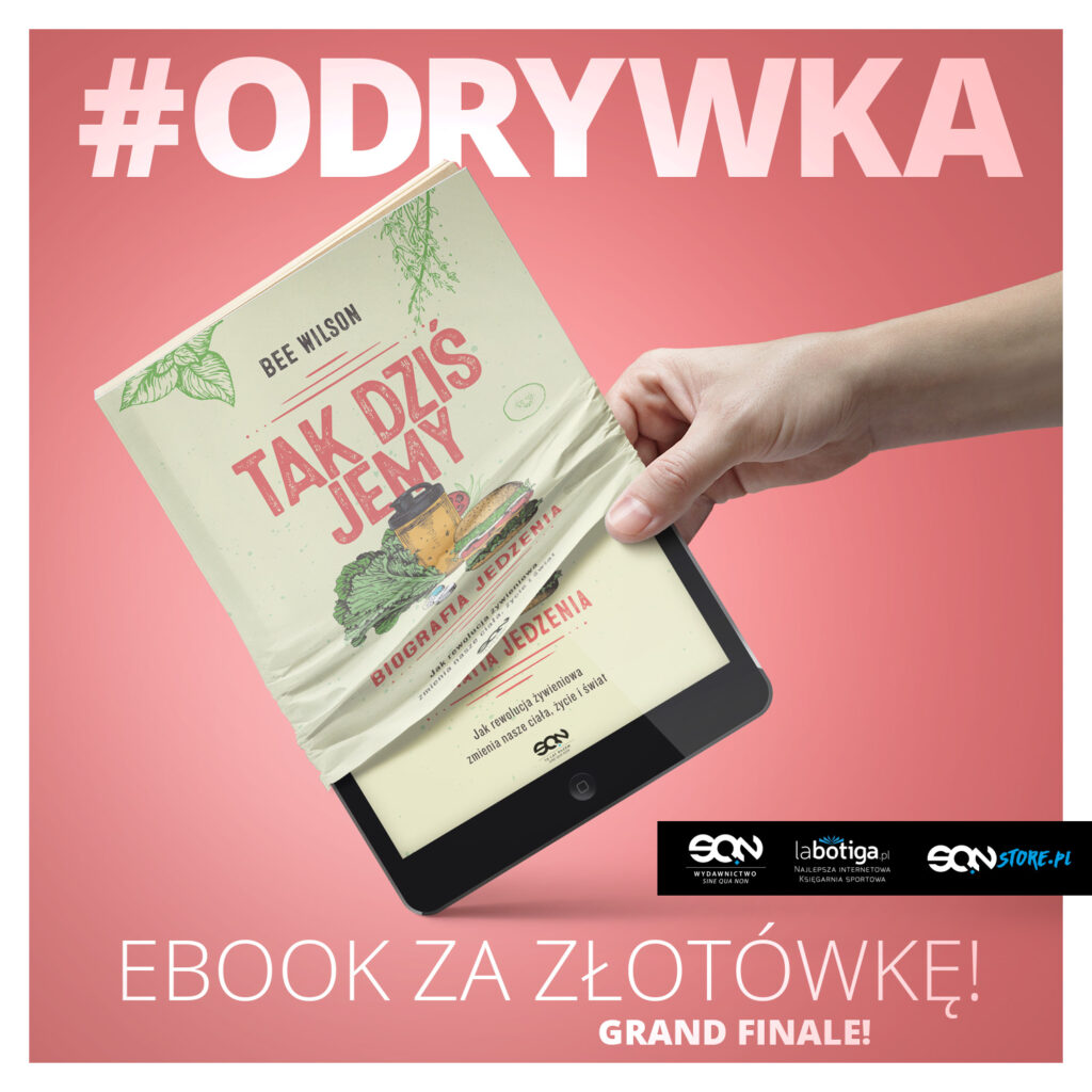 Dzisiaj w akcji #odrywka główną rolę odgrywa Tak dziś jemy autorstwa Bee Wilson. Pomimo że akcja była zaplanowana na 14 dni, mamy dla was jeszcze jeden tytuł! Nie znajdziecie w nim nowych przepisów na czas izolacji, ale poznacie lepiej historię jedzenia. Dowiecie się m.in. o znikającej godzinie lunchu, sproszkowanych zamiennikach jedzenia takich jak Huel, braku czasu na gotowanie oraz rosnącej popularności weganizmu i Uber Eats.