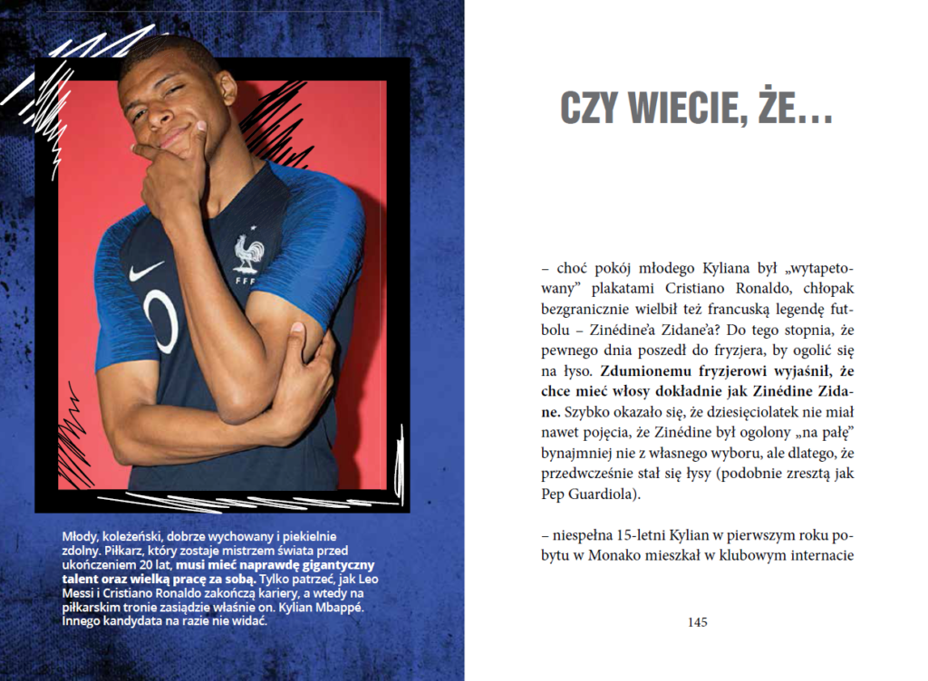 „Mbappé. Nowy książę futbolu” to pozycja obowiązkowa dla wszystkich młodych kibiców, którzy chcą poznać drogę młodego piłkarza z paryskich przedmieść na mistrzostwa świata. Chyba słusznie można powiedzieć, że sukces rodzi się z marzeń i ciężkiej pracy.