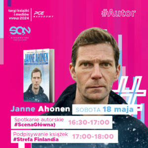 16:30 – 17:00 – #scenaGłówna – JANNE AHONEN (17:00 – 18:00 #strefa Finlandia – podpisywanie książek)