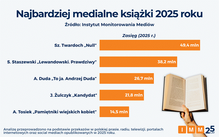 Instytut Monitorowania Mediów opublikował dane dotyczące obecności książek wydanych w ubiegłym roku w polskich mediach. Spośród wszystkich tytułów na drugim miejscu zestawienia znalazła się biografia kapitana reprezentacji Polski pióra Sebastiana Staszewskiego z zasięgiem na poziomie 38,2 mln. Lepsza okazała się jedynie powieść Szczepana Twardocha „Null”, a nasza publikacja wyprzedziła m.in. autobiografię prezydenta Andrzeja Dudy czy pozycję „Kandydat” Jakuba Żulczyka.