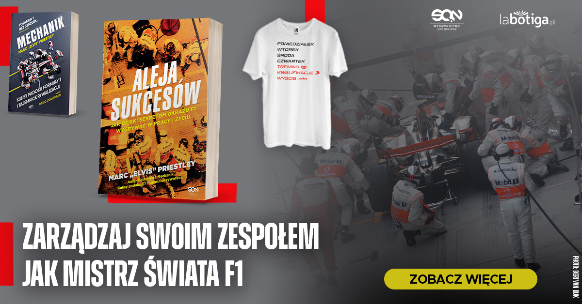 Formuła 1 to laboratorium ekstremalnej efektywności, gdzie o sukcesie decydują ułamki sekund. Marc „Elvis” Priestley, autor bestsellera Mechanik, zabiera czytelników tam, gdzie nie sięgają kamery – prosto do garażu mistrzów świata. To nie jest zwykły podręcznik zarządzania, to przesiąknięta zapachem spalin lekcja zwyciężania w najbardziej wymagającym sporcie na świecie, napisana przez człowieka, który przez lata pracował ramię w ramię z takimi legendami jak Lewis Hamilton, Fernando Alonso czy Kimi Räikkönen.