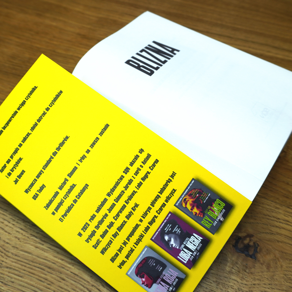 Od 2023 roku nakładem Wydawnictwa SQN ukazały się thrillery Juana Gómeza-Jurado z serii o Antonii Scott: Reina Roja. Czerwona Królowa, Loba Negra. Czarna Wilczyca, Rey Blanco. Biały Król, prequel Blizna, thriller Pacjent oraz dodatek pod tytułem Sekretna historia pana White’a.