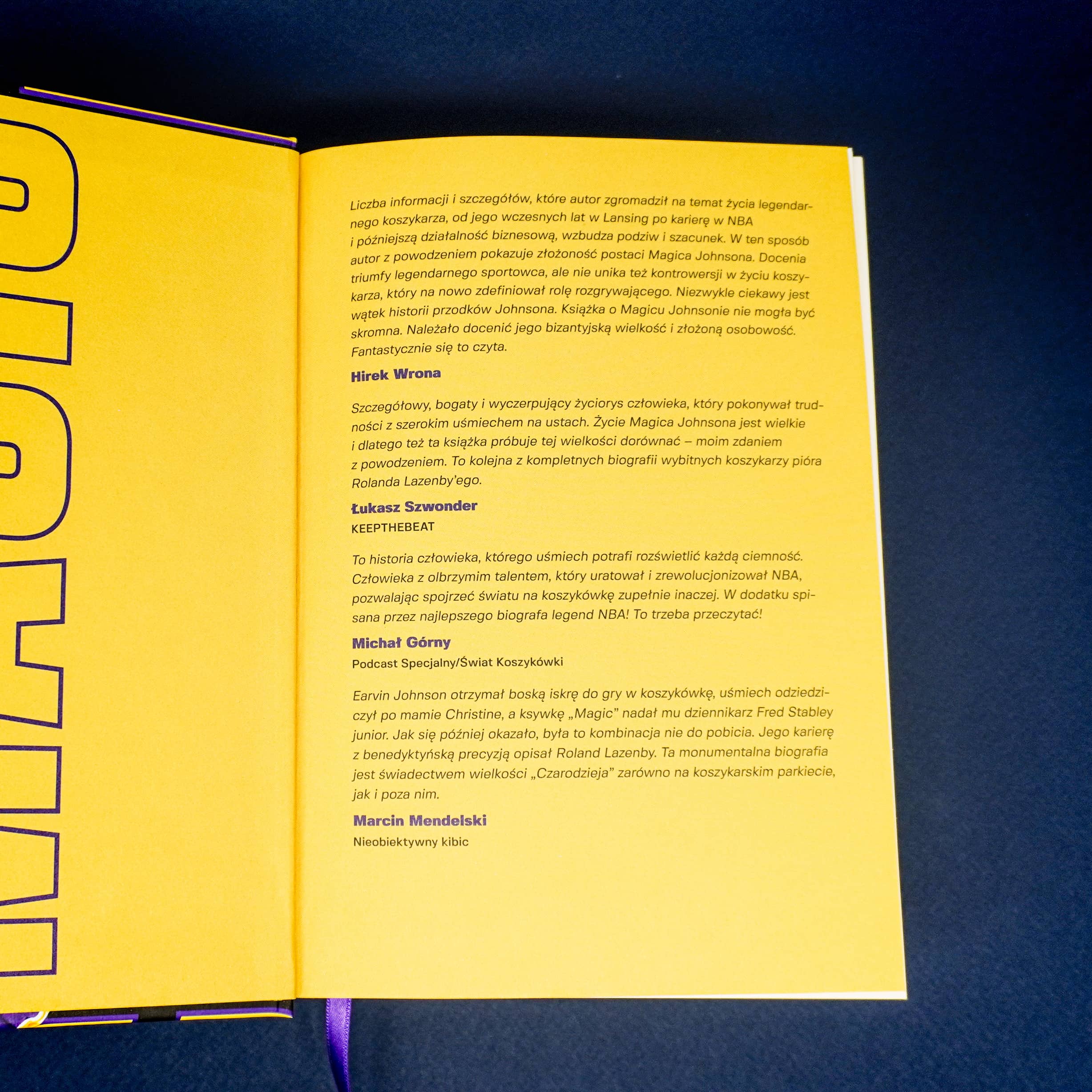 Liczba informacji i szczegółów, które autor zgromadził na temat życia legendarnego koszykarza, od jego wczesnych lat w Lansing po karierę w NBA i późniejszą działalność biznesową, wzbudza podziw i szacunek. W ten sposób autor z powodzeniem pokazuje złożoność postaci Magica Johnsona. Docenia triumfy legendarnego sportowca, ale nie unika też kontrowersji w życiu koszykarza, który na nowo zdefiniował rolę rozgrywającego. Niezwykle ciekawy jest wątek historii przodków Johnsona. Książka o Magicu Johnsonie nie mogła być skromna. Należało docenić jego bizantyjską wielkość i złożoną osobowość. Fantastycznie się to czyta.
