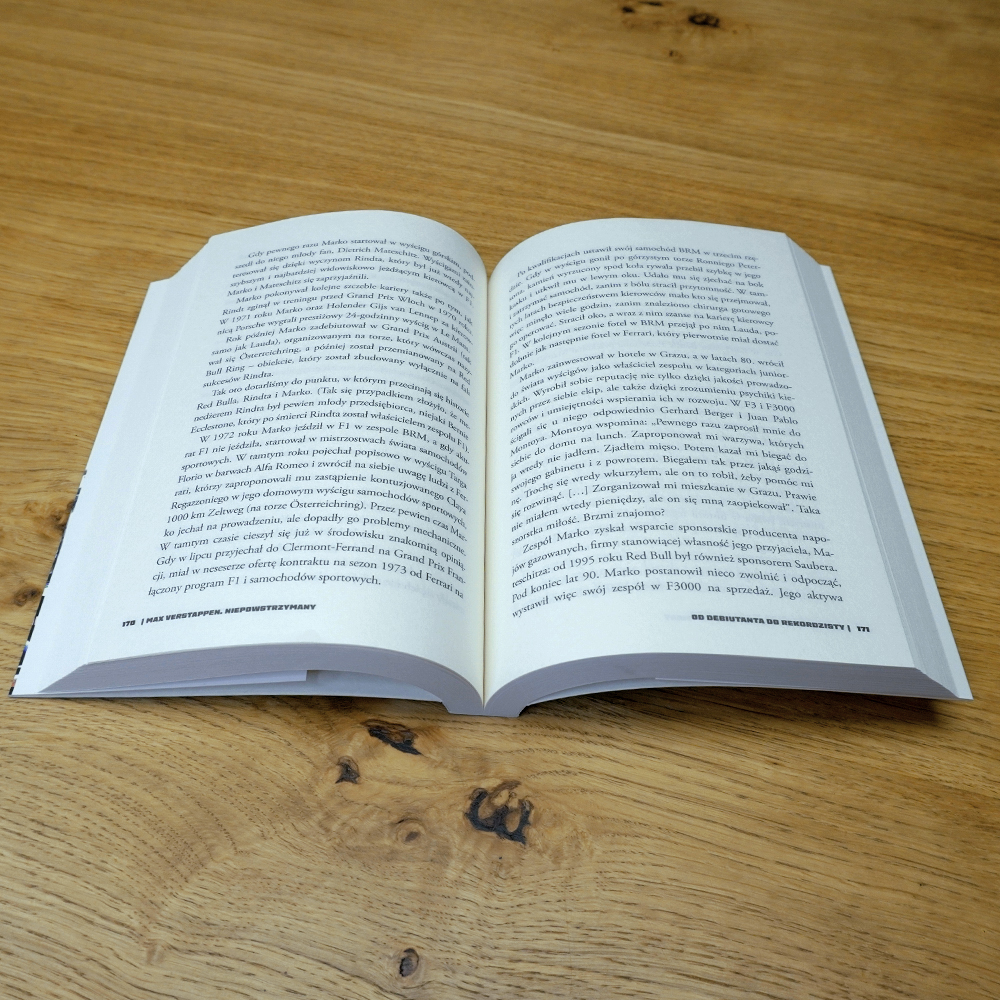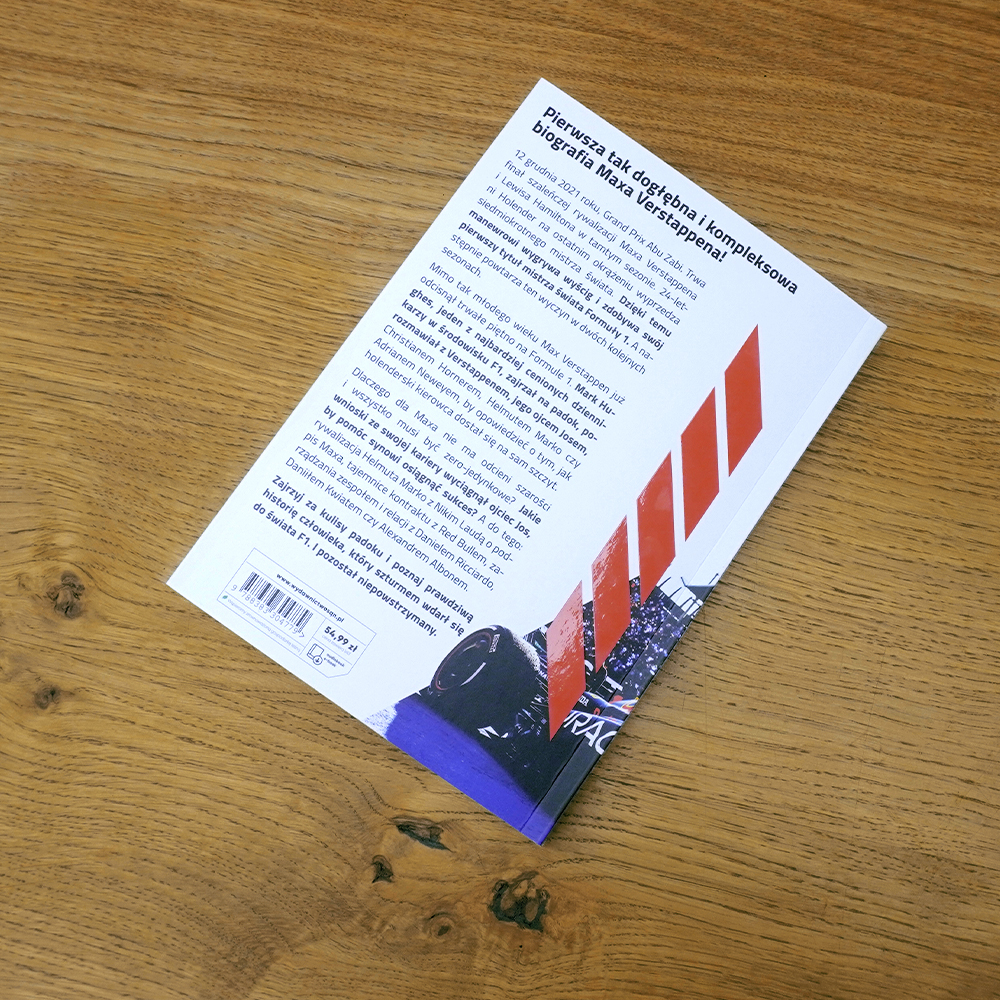 Historia dziecka urodzonego w domu, gdzie wszystko kręciło się wokół wyścigów. Max Verstappen od najmłodszych lat wychowywany był w duchu ciężkiej pracy, która miała na celu tylko jedno – stworzenie kierowcy wszechstronnego, idealnego, wielokrotnego mistrza świata. Ta lektura jest nie tylko doskonałym przybliżeniem kariery Holendra, ale przede wszystkim pozwala zrozumieć złożoność relacji w najbliższym otoczeniu Maxa oraz zależności w kręgu przyjaciół i członków rodziny. To wyprawa w poszukiwaniu wszystkich elementów, które składając się w jedną całość, tworzą bezkompromisową maszynę do wygrywania, napędzaną kolejnymi rekordami.