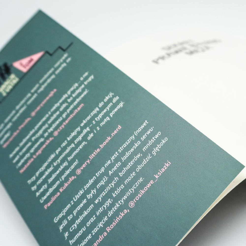 Na miejscu zbrodni staje sierżant sztabowy Straszewicz, który szybko godzi się z tym, że będzie mieć na głowie nie tylko prokuratora, lecz także trzy pisarki o zdecydowanie za dużej ciekawości: Agatę, Ninę i Zuzę. Każda z nich ma swoje zmartwienia – Zuza nie może się uwolnić od natarczywego wydawcy, Nina musi się zmierzyć z brakiem jakiegokolwiek, a Agata… cóż, ona po prostu musi rozwiązać tę sprawę. Inaczej kolejny kryminał napisze zza krat.
