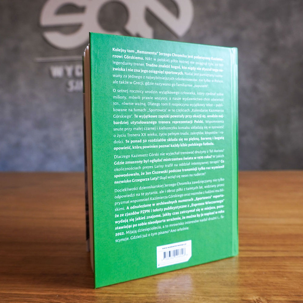 Kolejny tom „Remanentu” Jerzego Chromika jest poświęcony Kazimierzowi Górskiemu. Nikt w polskiej piłce nożnej nie osiągnął tyle, co ten legendarny trener. Trudno znaleźć kogoś, kto nigdy nie słyszał tego nazwiska i nie zna jego osiągnięć sportowych. Nadal jest pamiętany i uznawany za jednego z najwybitniejszych szkoleniowców, nie tylko w Polsce, ale także w Grecji, gdzie nazywano go familiarnie „papusem”.