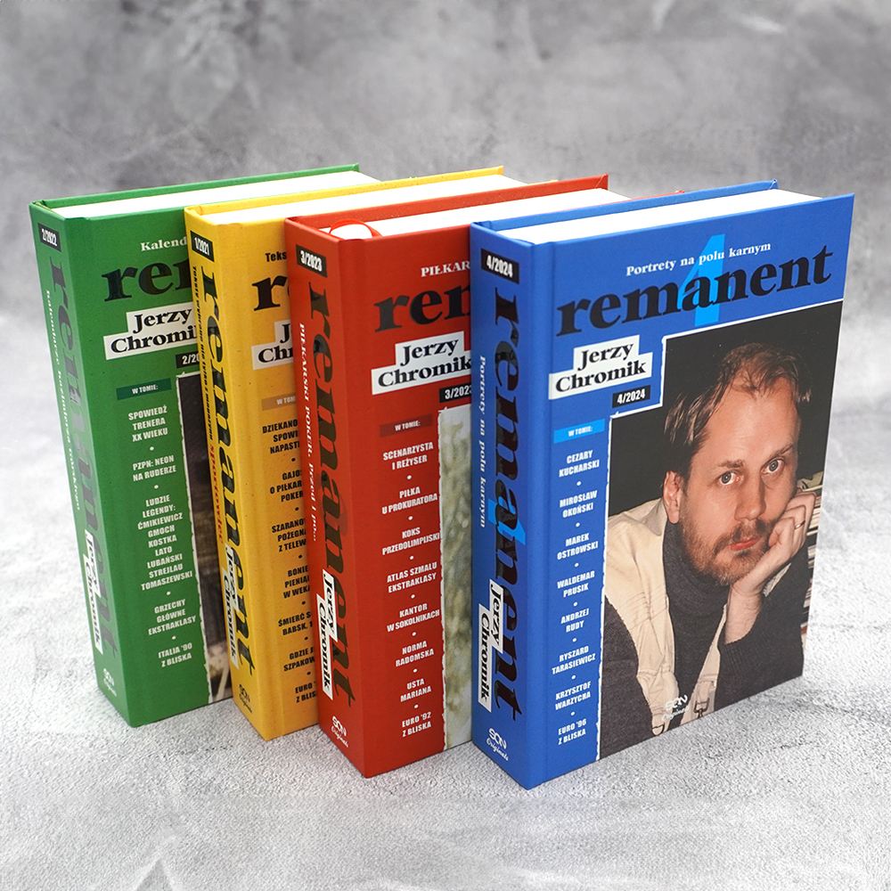 W czwartym tomie Remanentu wyszedł więc znów daleko poza świat piłki nożnej. Są tutaj rozmowy o życiowych wartościach, marzeniach, sukcesach i porażkach. A ponadto kolejne korespondencje, tym razem z turnieju Euro ’96. To one, jak wehikuł czasu, przenoszą nas do meczów z niezapomnianymi dryblingami Karela Poborskiego, stałymi fragmentami Christo Stoiczkowa i spektakularnymi zagraniami „Gazzy”. Przypomnimy sobie też o złotym golu Olivera Bierhoffa…