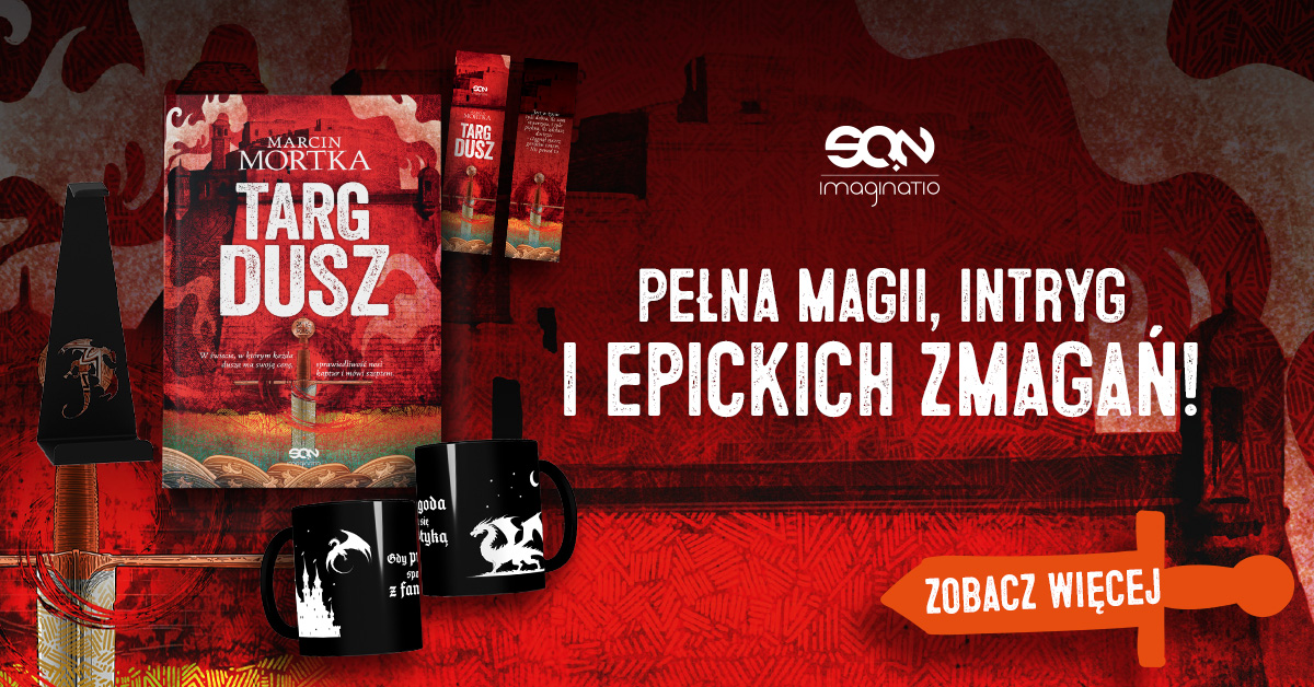 Niesamowite jest to na ile sposób Marcin Mortka potrafi bawić czytelników! Tak też jest w Trylogii Maltańskiej. Mimo powagi sytuacji, ciągłego zagrożenia i niełatwo losu jaki jest udziałem głównych bohaterów, autor umiejętnie wpłata swoistą lekkość jako przeciwwagę. Czyni to chociażby za pomocą wymyślnych wyzwisk jakimi obrzucają się towarzysze podróży – warto notować na przyszłość! Na przykład: „nie mam cienia wątpliwości, że diabeł zacierał z radością łapska w dniu poczęcia każdego z was!” – może się przydać w trakcie zażartej dyskusji. A już na poważnie mówiąc to żal się robi, że nastał koniec historii Brunona i Soave, ale „Targ dusz” to godne jej zwieńczenie.